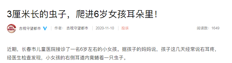 2. 不要试图用挖耳勺等物品或手指,试图把虫子“掏”出来!这样不仅伤耳朵,而且如果虫子是活的,越用东西捅它,它就越会往里面逃。何况你也无法确定虫子是否被完全掏出来了。(万一掏出来一半,还留了一半……)